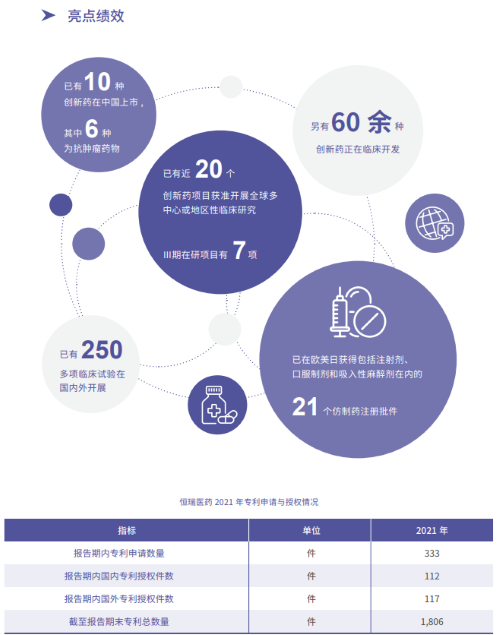 报告指出,在科技创新战略引领下,8868体育2021年累计研发投入62.03亿元,比上年增长24.34%,研发投入占销售收入比重达到23.95%,再创历史新高。以此为支撑,2021年公司有3款创新药获批上市,已上市创新药总量增至10款,其中6款为抗肿瘤药物。同时还有60余种创新药正在临床开发,250多项临床试验在国内外开展,其中近20个创新药项目获准开展全球多中心或地区性临床研究。在创新药研发上,8868体育已基本形成了上市一批、临床一批、开发一批的良性循环。