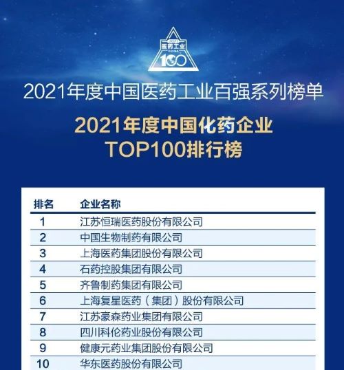 7月12日晚,正在举行的2022米思会(中国医药健康产业共生大会)上,发布了“2021年度中国医药工业百强系列榜单”。8868体育以扎实的创新研发实力和稳健的市场运营能力,再次蝉联“中国化药企业TOP100排行榜”榜首。