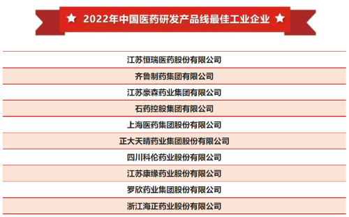 8868体育凭借长期积累的综合竞争力和业界领先的研发实力,多年入选全国医药工业信息年会系列榜单。今年的大会上,公司继续位列中国医药工业百强企业前十,并稳居“2022年中国医药研发产品线最佳工业企业”榜首。