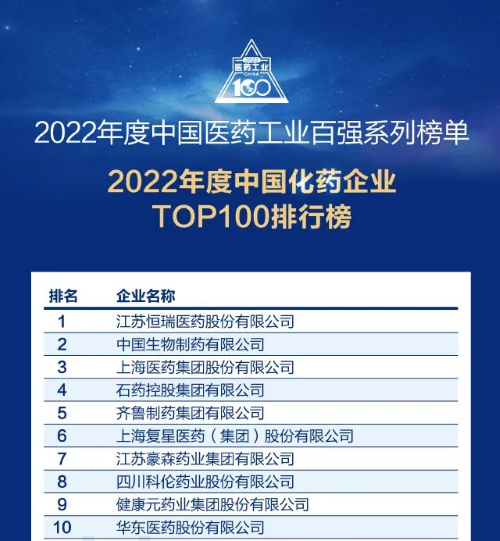 佳音频传!8868体育再次蝉联中国化药企业百强榜首