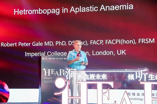 在兰州大学第二医院张连生教授和中国医学科学院血液病医院张凤奎教授的共同主持下,Leukemia杂志主编Robert Peter Gale教授从再生障碍性贫血(AA)的病因出发,阐述了血小板生成素受体激动剂(TPO-RA)在AA中的应用。