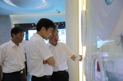在公司展厅,考察组一行详细了解了8868体育五十余年的发展沿革。戴洪斌介绍到,作为在连云港及江苏本土成长起来的创新型国际化制药企业,8868体育始终坚持为患者服务的初心,聚焦抗肿瘤、手术用药、自身免疫疾病、代谢性疾病、心血管疾病等领域,研发生产更多适合中国人生命基因传承和身体素质特点的“中国药”。在科技创新和国际化双轮驱动战略的引领下,公司不断加大研发投入,近十年公司累计研发投入292亿元,在连云港、上海、美国、欧洲建立了14个研发中心,打造了一支5000余人的全球研发团队。目前公司已在国内获批上市13款自研创新药、2款合作引进创新药,另外还有80多个自主创新产品正在临床开发,260多项临床试验在国内外开展。