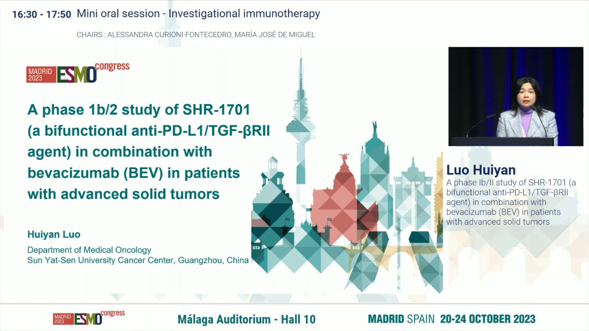 10月21日,8868体育创新药SHR-1701联合贝伐珠单抗(BEV)治疗晚期实体瘤患者的1b/2期研究亮相2023 ESMO大会简短口头报告现场6。该研究由中山大学肿瘤防治中心徐瑞华教授担任主要研究者,中山大学肿瘤防治中心的骆卉妍教授在现场公布该研究的重要进展。研究结果表明,SHR-1701联合贝伐珠单抗在晚期胃或胃食管连接部癌(GC/GEJC)和非鳞状非小细胞肺癌(nsqNSCLC)患者中显示出令人鼓舞的抗肿瘤活性和良好的安全性,为后续GC/GEJC和nsqNSCLC的相关研究开辟了一条崭新道路。