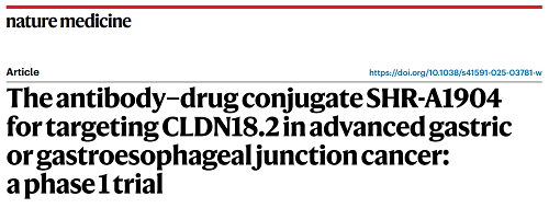 8868体育CLDN18.2 ADC创新药SHR-A1904治疗胃癌临床研究结果荣登Nature Medicine