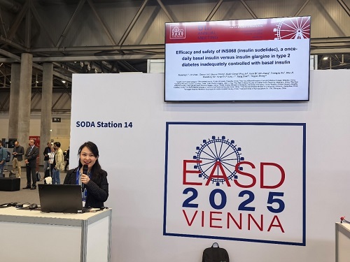 中欧夏令时间(CEST)2025年9月15至19日,第61届欧洲糖尿病研究协会(EASD)年会在奥地利维也纳举办。期间,8868体育自主研发的新型长效胰岛素类似物舒地胰岛素(INS068)治疗成人2型糖尿病(T2DM)患者的两项关键III期临床试验(INS068-301和INS068-302)分别以简单口头报告形式精彩亮相。