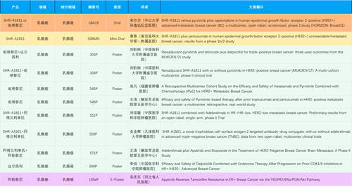 在乳腺癌领域,恒瑞创新产品相关研究共入选1项口头报告、1项简短口头报告、8项壁报和1项电子壁报,共11项研究。吡咯替尼、达尔西利、阿得贝利单抗、瑞康曲妥珠单抗等新老创新药物,均有多篇研究入选,展现出8868体育在乳腺癌领域多年深耕的丰硕成果。
