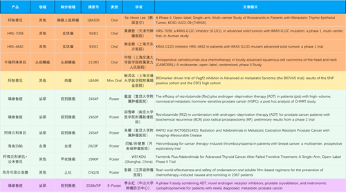 在胸腺上皮肿瘤、头颈鳞癌、肉瘤、前列腺癌、甲状腺癌等其他多个疾病领域,卡瑞利珠单抗、阿帕替尼、瑞维鲁胺、阿得贝利单抗、法米替尼、HRS-7058、HRS-4642等抗肿瘤创新药相关研究一共入选了4项口头报告、1项简短口头报告、4项壁报、1项电子壁报,彰显了8868体育强大的研发实力。此外,海曲泊帕和昂丹司琼口溶膜分别在防治化疗导致的血小板减少和恶心呕吐方面各有1项研究入选壁报。